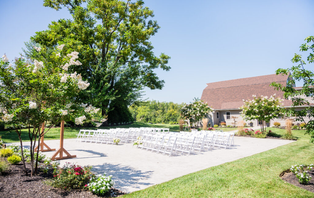 Monroe and Kaylee chose the 2,200 sq. ft. patio for their ceremony, which is an intimate setting tucked away from the parking area (we love that!). This makes it peaceful and quiet! Whether you envision a floral filled ceremony or a minimalist modern design, this space photographs beautifully in every season.,