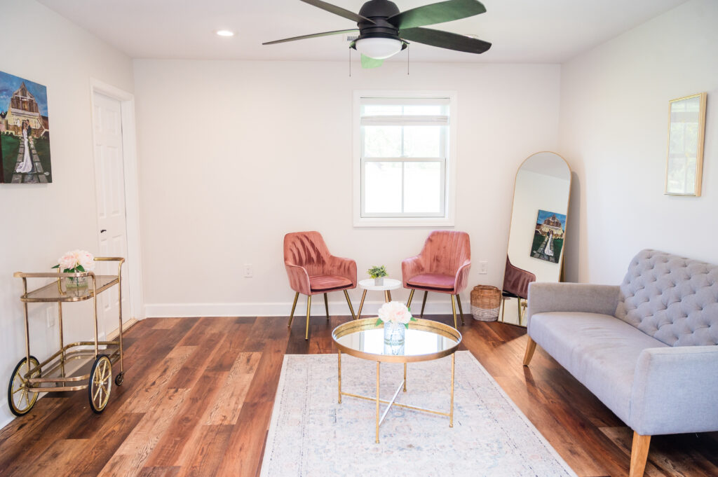 A HUGE perk of choosing Halcyon Watson as your Loudoun County wedding venue is the Something Blue Cottage, literally just steps away from the barn! This space was thoughtfully designed for comfort and amazing photos.