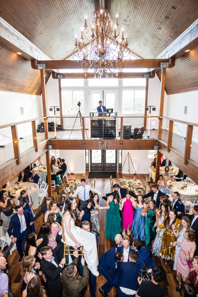 One of my favorite features is the upstairs loft area, which gives you a stunning bird’s-eye view for photos. It offers a fun, unique perspective for capturing group shots or emotional moments throughout your wedding reception at Halcyon Watson. I love having my second photographer go up there during the first dance or parent dances.
